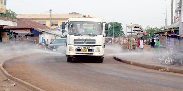 Some principal streets in the Tamale metropolis, beginning from the ADB Bank to Agric traffic light through to the Tamale Airport on the main Tamale-Walewale-Bolgantanga dual carriageway, were also disinfected.