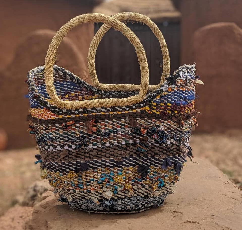 Strong and fashionable shopping baskets made from plastic waste and other natural raw materials from the shea zone. Changing the narrative of using plastics to alternative fashionable natural products