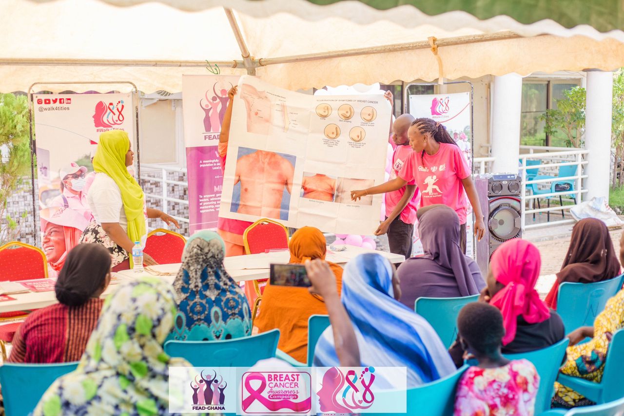 FEAD-Ghana, a non governmental organization, organized a breast cancer education and free screening exercise in partnership with Walk4Tities at its office premises at Jisonayili, Tamale on October 27, 2024, marking a significant step forward in the organization’s commitment to promoting health and wellness in the community. The program aimed to educate individuals about the importance of breast cancer awareness, provide free screening services to detect possible abnormalities in the breast, empower individuals with knowledge and available services to take control of their breast health, and to foster good relationships with the community.